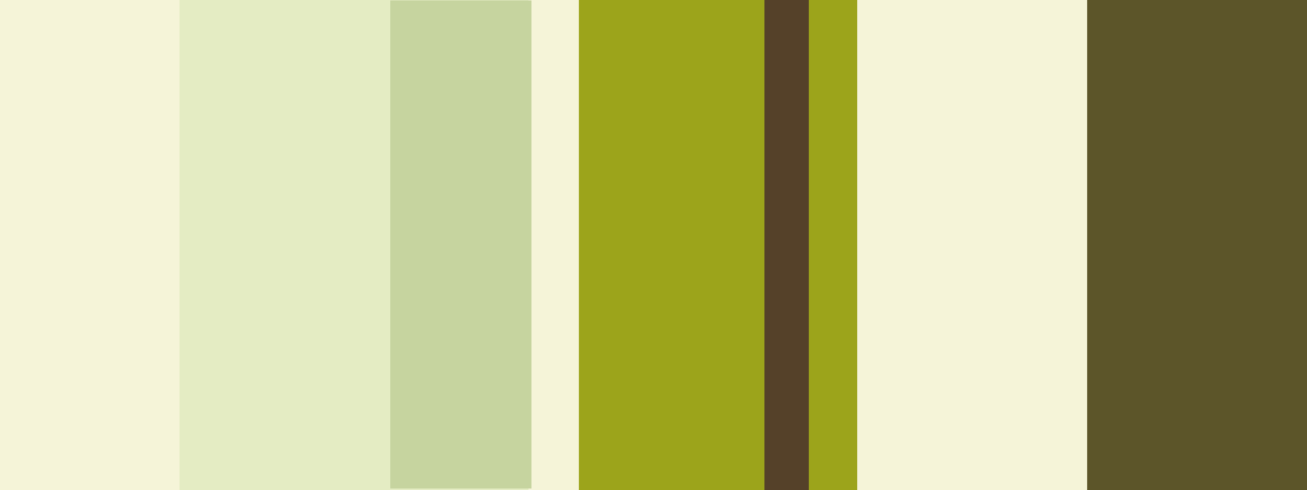 Die Farbkombination Relax vermittelt absolute Zufriedenheit und Entspannung, u.a. durch Grün als die beruhigendste Nuance des Farbspektrums. Die Basis bildet dabei eine zurückhaltende, leicht gelbliche Nuance, die quantitativ die größte Prägnanz besitzt. Hinzu gesellen sich kräftig gesättigte Farben, die als Bodenbelag oder als Mosaikfliesen genutzt werden. Als Akzent fungiert ein tiefgründiges Braun. Einen möglichen Verwendungszweck dieser Farbharmonie stellen Ruheräume und Relaxzonen dar.